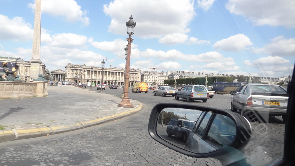Seuraavana oli vuorossa reissun huipentuma Champs Elyseen kierto kahteen kertaan. Homma alkoi kokoontumisella tienlaitaan Avenue Fochilla puolen kilsan päässä riemukaaresta. Siitä lahdetiin kaksi autoa rinnan letkassa huoltoauton perässä. Oli kiva ajaa ihan sikana hätävilkut päällä torvet soiden kun paikalliset autot yritti tunka väliin joka paikassa. Hirveästä kaaoksesta huolimatta paketti pysyi kasassa yhden kierroksen. Väestä teiden varsilla ehkä 1/4 ymmärsi aiheesta jotain ja kaikenlaisia kannustus heilutuksia ym. saatiin.