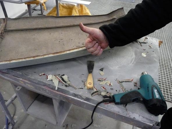 Vanhan maalin poisto kuumailmapuhaltimella + lastalla. Tykkää