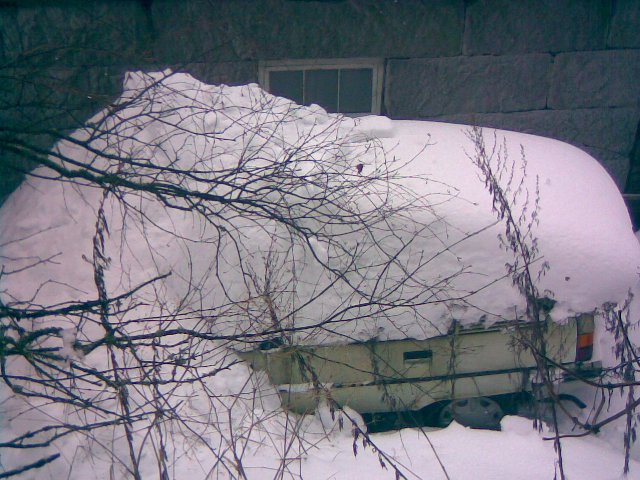 Piti pudottaa lumia navetan katolta ettei katto sorru siellä olevien Citikoiden niskaan.... Osanluovuttaja oli sit pysäköity hyvään paikkaan.. ja se ei ollut siirrettävissä... Merkin varmasti tunnistaa helpolla.... ja ei muuten ole farkku vaikka perässä oleva luonnollisesti kasaantunut lumi vois siltä näyttääkin.. Etupäässä on sit vähän enemmän lunta ja luonnottomasti siihen laskeutunutta... pitäis kai vähän ottaa pois ettei tuulilasi anna periksi...