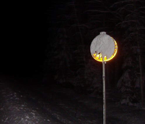 Talvella aika usein näkee vielä kaiken kivan lisäksi aurauslumeen peittyneitä liikennemerkkejä. Arvaa siinä sitten miten kovaa saa ajaa...