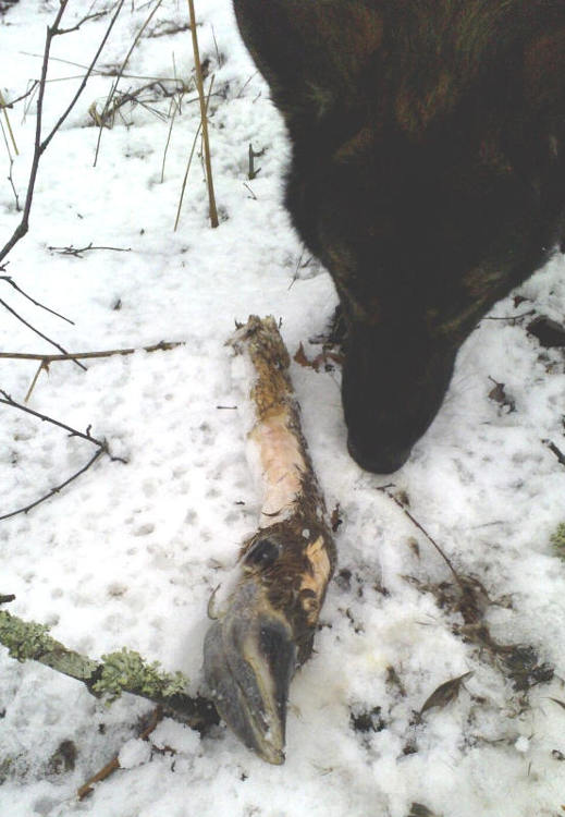 sitikkaporo kirjoitti: Ettei kävis niin kuin tälle.. Meirän saksalainen seefferi löysi tollaisen lähimetästä viime lumilla. Meillä taas naapurin kääpiösnautseri raahasi tollasen kotiinsa, oli naapurin emäntä vähän kummissaan. Niin oli meidän lapukkakin, naapurin pentele pölli sen lelun