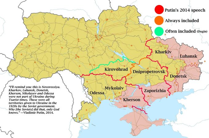 Putin lupasi Intiassa "vapauttaa" Donetskin ja Novorussian, nykyinen etenemisvauhti ei vaan oikein riitä mut ei toi oikein rauhantahdolta näytä.