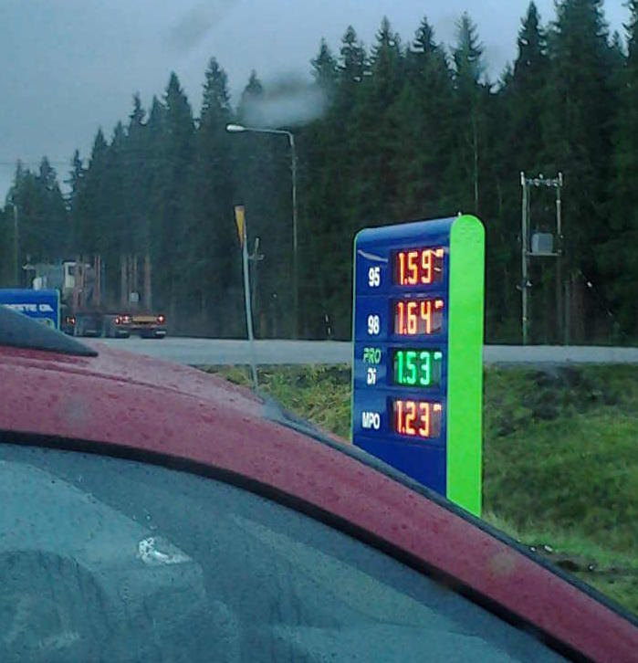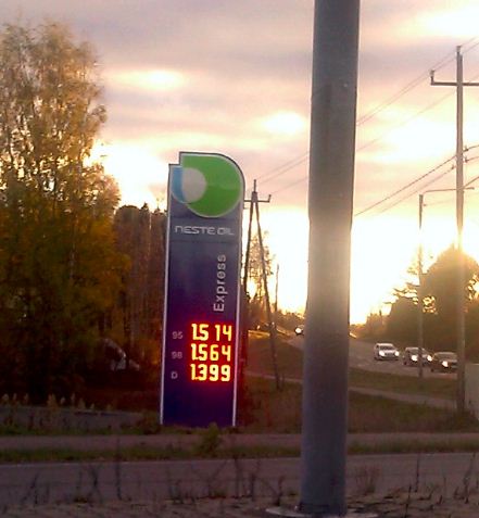 Empä muista vuosiin noin halpoja hintoja... Tämä tänään Tuusulasta, Golf-kentän kupeesta, kylmän Nesteen pihasta.