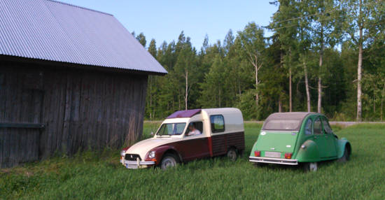 Tänään sain jopa herättyä. Vähän pyrkii väsyttämään, kun on viimeiset pari viikkoa vähänniinkö lentänyt koko ajan. Eikä torstain jälkeen ole edes halunnut ehtiä ajoissa nukkumaan ja päivät kun raittiissa ilmassa viettää mukavassa seurassa niin sitä ei edes huomaa väsyvänsä... Hauskaa oli kuunnella ihmettelyä, kun konepellin alla olleita osia tunnistaa yrittivät, useasta eri Sitikan mallista on tuonne tullut osia sijoiteltua, sekä joitakin myös "vääränmerkkisistä" autoista. Kivasti sinne sopivat...  Tämäkin lopulta tuli auttavasti ajokuntoiseksi, tarinan mukaan viimeksi olisi ajettu vuonna -92 ja nyt sitten perjantaina ekaa kertaa sen jälkeen. Jotain mietintää tuli kuultua vääristä kasausohjeista, mitähän lie olisivat sillä tarkoittaneet..? Kivaa kyllä oli, kymmeniä ennen vuotta -70 rekisteröityjä 2CV -pohjaisia ajoneuvoja niihin liittyvine ihmisineen, jos nuo kaikki tarinat mitä menneiden päivien aikana kuulu saisi johonkin kirjoiteltua niin siitä tulisi helposti loppuvuodeksi luettavaa. Alkaen ensimmäisen Suomeen tuodun 2CV:n hankkimisen kuvioista, ko. ajopelin tehtaalta hakeneen henkilön pojanpojalta kuultuna, lisättynä höyrylaivajutuilla, helppo oli viihtyä... Tänään sitten kopsahti "Ankallisarkistosta" kirje, jossa kerrotaan kuvassa näkyvän laitteen eka rekisteritunnus, joka näyttäisi vapaana olevan, niin pitäisiköhän sitä lähteä kyseistä tunnusta varaamaan itselleen..?
