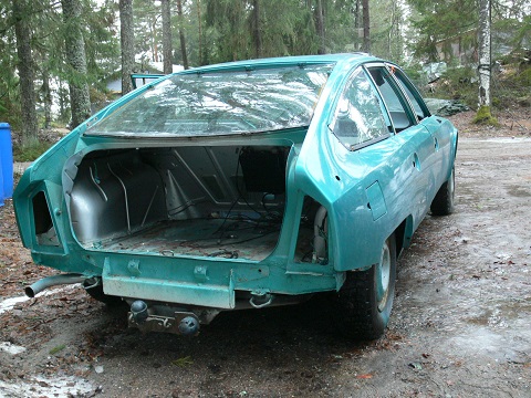Nyt on kori putsattu lopuistakin maalausta haittaavista hiluista. Tuulilasi saa olla paikoillaan kuljetuksen ajan. Tässä jo malttamattomana odotellaan trailerikyytiä. Liitteet:
