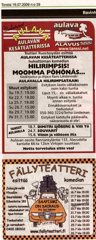 Piti skannata viime kesänä lehdestä pari kesäteatterimainosta. Taattua kesäteatterilaatua :=)