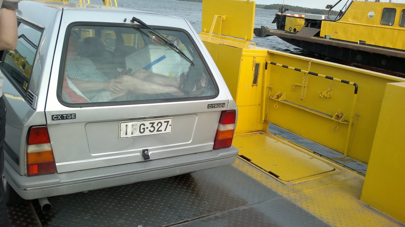 CX kesti loistavasti polttarireissun Järvenpää-Helsinki-Espoo-Korppoo-Turku-Espoo-Helsinki-Järvenpää, kilometrejä tuli yli 600 googlemapsin mukaan. Järvenpäässä lähtiessä koneeseen laitettiin Wesalla RVS-ainekset, motarilla vaikutus kävi heti ilmi: nopeusmittarin neula ei kestänyt lisääntynyttä kiihtyvyyttä, vaan sekosi ja meni nollaan. RVS näytti taas voimansa Tänään kotona tutkiessa ilmeni, että nopeusvaijerin yläpään muovikuori oli katkennut mittarin takaa, mutta se ilmeisesti ei ole ainut syy toimimattomuuteen. Breakin sikaosasto oli myös käytössä, matkatavaroiden ja elintarvikkeiden lisäksi sinne mahtuu hyvin yksi henkilö elpymään ja ihmettelemään aika-ajojen tuloksia. Tämä lienee hyötyajoa Citroënilla Turkkusen kaupungin Teknisen viraston parkkipaikkojen maalausosasto on maar varmaan käyttänt Breakia parkkipaikkojen pituuden määrittämisessä, niin hyvin pituus täsmäsi auton kanssa. Kuvassa on vain nestepintojen tarkistus, ei suurempaa huoltoa.
