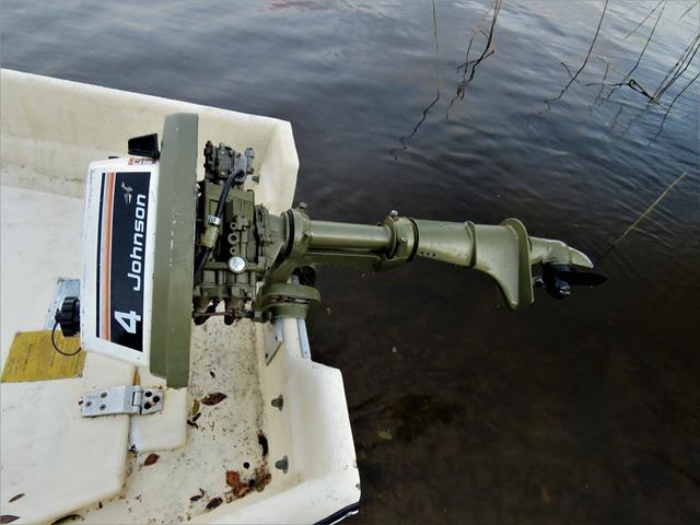 Ostin naapurikunnasta soutuveneeseen sopivan perämoottorin, Johnson 4 Seahorse, ei turhaa painoa kun ei ole edes vaihdetta. Käynti paljon tasaisempi kuin 1-sylinterisessä Suzukin 3,5 heppasessa eikä upota veneen perää niin syvälle. Johnsonista puuttuu muovinen koneen alasuoja, siksi imuäänet huomattavan kovat. Kai siihen voi jonkun imuäänenvaimentimen laittaa, ehdotuksia Kävin myös kirpparilla jota äiti ja tytär yhdessä piti, Kirpparin nimi oli Vanha tavara ja Posliini.