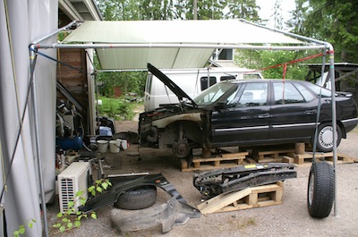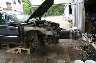 MustaKuukan nokkaremppa aloitettu, tarkoituksena laittaa kats.kuntoon, ja samalla kylmästöinti toimimaan, puhdistaa jäähdytysjärjestelmä ja laittaa uudet nesteet, sekä korjata etupuskurin päiden kiinnikkeet... Liitteet: