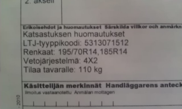 Ha, BAT:n rekisteriotteesta löytyy Rivo-Riitta vitsi. Tosin tämä koskee vain jos katsastettu Famiksi. Sitä tämä lienee vaikka onkin penkit viidelle.