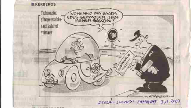 Julia on vilpas nainen. Hän autoili Sitruunallaan ja vonkasi myös täällä Porissa ilmestyvän lehden sivulla tänään. Ihan pääkirjoituksen naapurina.