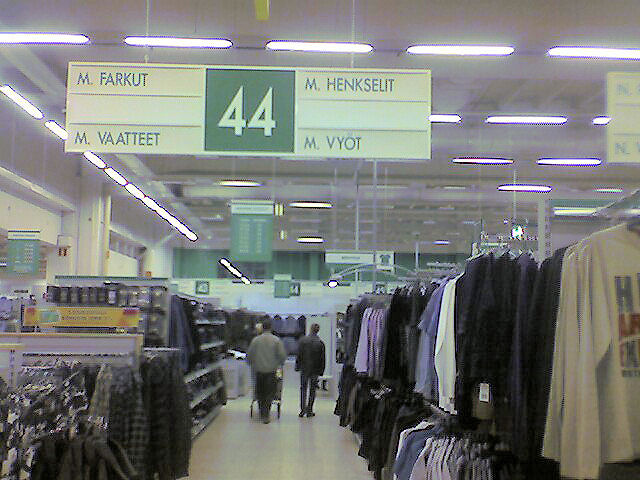 Pienestä täytyy köyhän huvinsa repiä... Jos sanovat, että Texasissa on kaikki suurta niin kyllä suurta löytyy Tampereeltakin. Viikonloppuostoksilla bongasin Kalevan Prismassa, että täällähän on oma käytävä miesten henkseleille ja vöille. Oikein piti surkea kuva ottaa ja mitata - 35 hyllymetriä pitkä käytävä miesten henkseleille !! Ja ilmeisesti tavara oli vielä päässyt loppumaan suuren kysynnän takia kun koko hyllystössä ei ollut ensimmäisiäkään henkseleitä