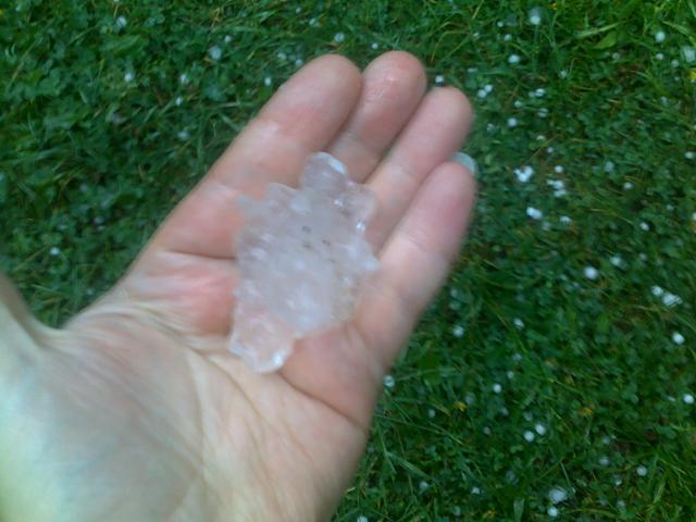 Niin ja lauantaina tuli Sastamalan Vammalassa tämmöisiä pieniä jääkikkareita taivaalta (pahoittelut huonosta kännykamera laadusta). Ei voi muuta kuin kiittää onneaan, että kummassakaan myräkässä ei käynyt mitään!!! Autot ja talot ja muutkin härpäkkeet säästyivät täysin vaurioilta.