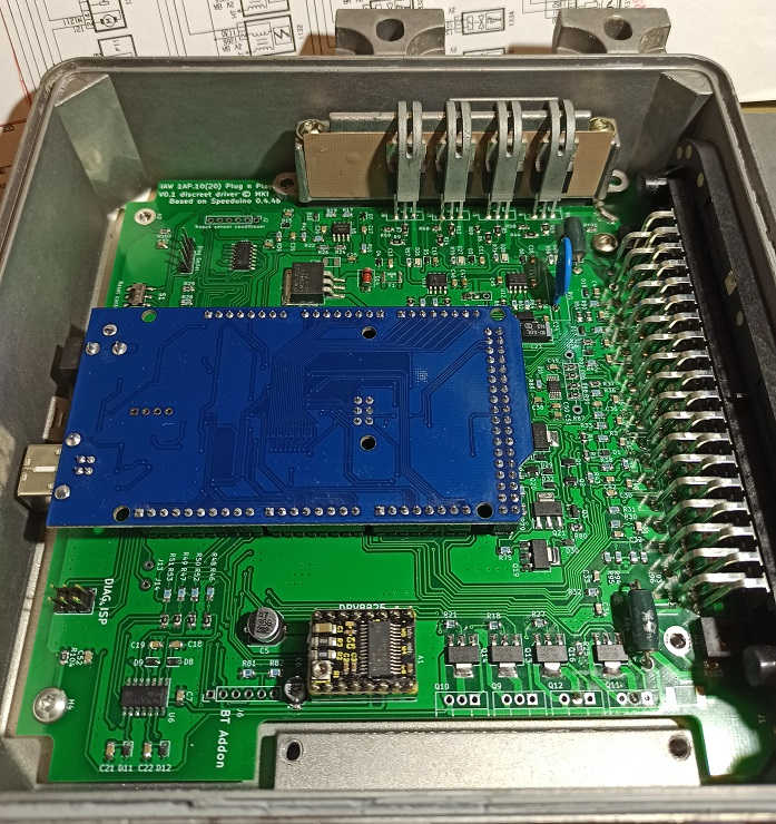 Vakioon Speeduinoon verrattuna lisäsin erillisen kontrollerin, joka on suunniteltu vahtimaan sytytyksen ja PA-suuttimien lähtöjen tiloja ja tarvittaessa myös virtaa ja toimii muutenkin lisädiagnostiikkana.