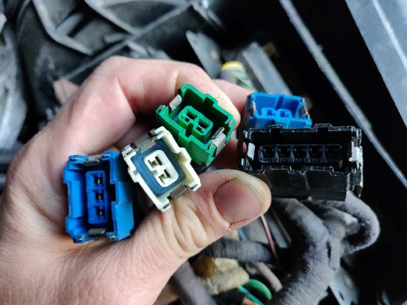 Löysin tiedon, että noi 2-nastaiset menisi seuraavasti: vihreä=ecu, sininen=hydractive, valkoinen=abs (jota mulla ei kyllä ole)