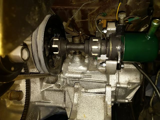 Tämäkin on taas nitkahtanut eteenpäin, kiitos mopoikäisen pojan joka innolla osallistuu. Katon kimppuun en ole vielä ehtinyt mutta moottorin sain nokalle takaisin. Jotta jotain edistystä tapahtuisi joudun joitakin juttuja jättämään myöhempiin vaiheisiin. Nyt tavoite saada manuaaliksi muutettu tekniikka pelaamaan niin että autoa pystyy siirtelemään. Poljinastelmaksi tuli berlinen malli ja kytkin vaijerikäyttöideksi. Alkuperäinen jarrujen jumittumisen syy selvisi asetelmaa irrotettaessa. Jarrusylinteri ei onneksi ollut jumissa vaan polkimen akseli ruostessa ja jumissa. Vaihdevivusto on tampere mallista. Aloin tyhmänä irrottaan kepiltä rintapellin läpi tulevaa tankoa mutta ei mahdu (kai?) ulos kun etukelkka pailkoillaan. Onneksi huomasin että on sama osa ja sai jäädä. Vain kelkan alla oleva nivelöity osa on erilainen, mutta helppo vaihtaa. Vaihdekepin pallonivel kovin väljä. Täytyy myöhemmin purkaa ja koittaa kirrata. Vetarit ehdin jo putsailla ja rasvailla., Mutta päätin kuitenkin tilata parin alkavaa halkemaa omaavan kumin tilalle uudet joten auki lähtee vielä. Tripodin rullat ja pesät oli ilahduttavan tiukkoja eikä kulumaa tuntunut. Akseleita oli kasa eri lähteistä olevia ja niistä yhdistelemällä sain sopivat tähän sillä automaatin akselit oikeata ulko-osaa lukuunottamatta eri mittaisia. Tripodin rullat on näissä leveäkeulaisissa samoja ja isompia kuin vanhoissa. Akseissa on eri määrä Sorvattuja merkkiuria joiden perusteella löytyy oikean pituiset. Saas nähdä sopiiko.. Ilmastoidussa manuaalissa hydepumppu on akselikäyttöinen nokka-akelilta. Alkuperäinen akseli jonka sain kumihärpäkkeineen, oli niin sökö eikä kumielementtejä taida olla saatavana. Korvasin sen kuvan mukaisella akselinpätkällä ja joustavalla vakio sakarakytkimellä. Homma jatkuu etujarrupalojen vaihdolla ja mäntien herkistelyllä, jonka jälkeen vetarit uusilla kumeilla pailkoilleen. Alkuperäiset vaihdekepin johdot jätän keskikonsoliin mutta yhditän napoja niin että käynnistyksenesto disabloituu ja perutuusvalokytkimeltä laatikon päältä tulee johdot niihin myös korvaten vanhan vaihdesiirtimen katkaisijan.