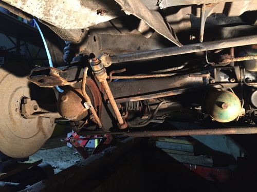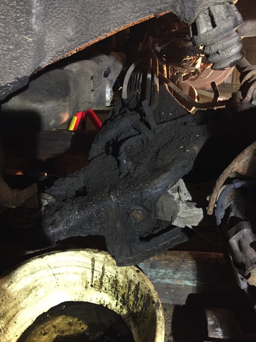Alunperin oli ajatus tehdä tähän heti sama operaatio kuin viime talvena farkkuun, eli uusia kaikki takapään putken ja putsata ja maalata takakelkka, mutta tämä ei näytä nyt lähemmin tarkasteltuna niin pahalta kuitenkaan... Pitää ensiksi selvittää mitkä nämä paksut putki/letkut oikein on? Olisko jotain Activa-liitännäisiä paluuputkia?