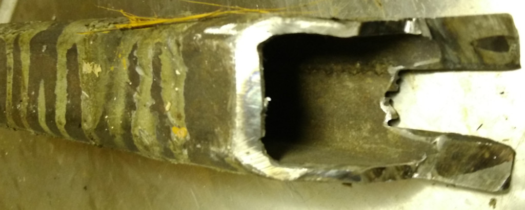 Sitten pitkä pultti irti toiselta puolen(lähti ihmeen hyvin) tuntui liikkuvankin kynkkä helposti alaspäin, työnsin pultin tilalle 8-millin kierretangon kannattelemaan kynkkää.