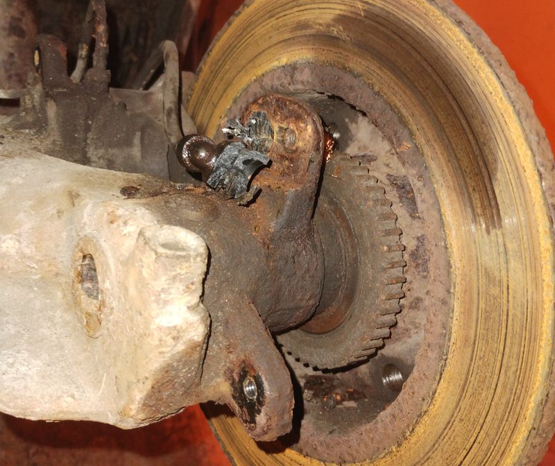 Taka abs-anturit taas kerran ainakin riittävän tiukasti ruostunut koloonsa. Hiomakaralla irtos molemmat  Takalokarin kaaren käski katsuri uusia, kun siinä oli ylimääräinen tuuletusaukko. Tuossa joku vanha kolhu/painuma, siksi kai ruostunut hanakasti. Koitin koputella suoraksi takaisin, mutta ei aivan priima vieläkään. Saa maalari joskus jatkaa, kuka se sitten ikinä onkaan... Liitteet: