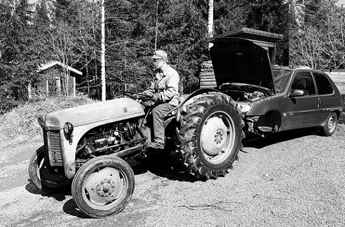 Näin mää olen aina halunnu tehdä. Ottaa kylän pojilta lavetti lainaan ja heittää mälli päälle. Saatana, siinä enää naukumaan naama valkeena vaimolle, lähtisikö hinaamaan, ei kestä kauaa, pari tuntia, kai sää vielä mua rakastat...? Että taasko? Että mikä auto? Eikö sulla ole niitä jo tarpeeksi? Etkösä jo kerran puhunut...?