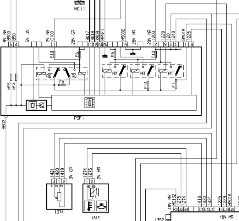 Teuski kirjoitti: Kuvan brosyyri löytyy kokonaisuudessaan täältä. Tiedossa siis on, että tuon BSM:n "28V NR"-liittimen pinnin 4 johto 1248 on +12V ja se pätkii. Tuosta on otettu se lämppärin ohjaus. Tämä nyt vain "yleisluontoisena heittona", mutta oletko tullut mitanneeksi samaisen liittimen pinneistä 3 ja 6 mitä niissä tapahtuu pätkimisen aikana? Ehkä myös kuvassa näkyvät "numeroimattomat", ilmeisesti numerot 1 ja 5 (jotka eivät ole käytössä, mutta niihin siirtämällä ongelmapaikan vika saattaisi korjaantua, vähän vastaava kuin Xm Y4:n konehuoneen sulakerasian muutos)..? Jos pätkimistä tapahtuu kaikissa noissa liittimissä, vika on "syvemmällä", jos taas vain pinnissä 4 niin silloin vika on piirikortilla, liittimessä tai sen juotoksessa... Tämänkertainen arvelu vain tuohon kuvaan ja tarinaan liittyen. Yhtään en yllättyisi vaikka olisi nuokin mittailtu ja päätelty, mutta tuommoisista lähtisin vikaa hakemaan...