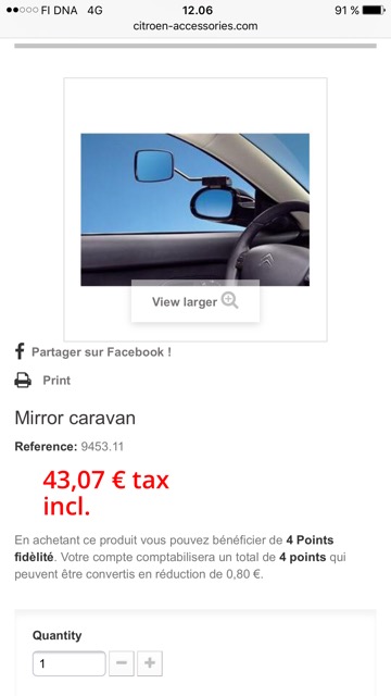 Jyväscaravanista löysin tuollaiset kutakuinkin kuin Citrique kirjoitti, juuri ja juuri sopi, niin että peilit mahtuu liikkuun. Yksi rekka veti niin läheltä että ilmavirta heitti käänsi koko peilin ikkunaa vasten. Aika helposti tuo peilisysteemi näkyy kääntyvän koria vasten. Yhtään raskaampia lisäpeilejä ei tohon kyllä kestä laittakaapa. Nyt ollaankin jo kontiomäen Shellillä yöparkissa.