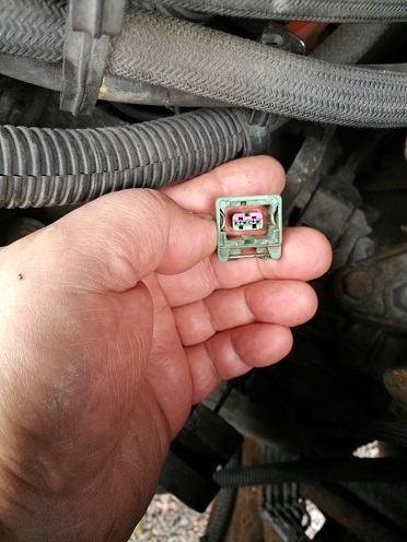 Toinen kysymäni irtonainen liitin on aiemman kuvan vihreä. Vihreä on PSA:ssa lämpötilaa mittaavien anturien johdin, noin yleisesti. Olin tökännyt kansirempan jälkeen sinne hankalaan paikkaan termarikopan taakse ilmastointia ohjaavan johdon ruskean liittimen. Siihen kuuluisi vihreä, ECU:lle jäähdytysnesteen lämpötilan kertovan johdon liitin. Vaihdoin oikean piuhan anturille ja analysaattori näytti samantien lämpötilaa.