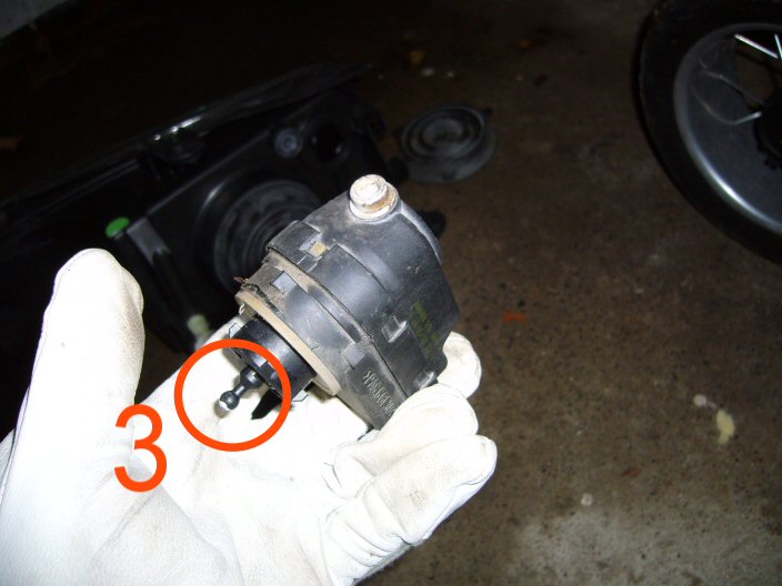 Aluksi kannattaa varovasti irroittaa keulamaski, vilkut ja valojen alla olevat muovilistat, jotta umpion saa irti. Itse umpion irroittamisessa ei ole ruuvien aukikiertämistä ja johtojen irroittelua kummempaa toimenpidettä, mutta itse jouduin tovin miettimään kuinka umpiosta saa valojen korkeussäätimen irti. Otin hommasta muutaman kuvan, joista kiinnitysmekanismi paljastuu. Elikkäs viimeisessä kuvassa oleva mötikkä on ykköskuvassa numerolla 1. merkityssä reijässä. Mötikkä lähtee irti kiertämällä sitä puolikierrosta jompaan kumpaan suuntaan ja muljauttamalla samalla sivulle päin. Siis numerolla 3. merkitty pallo on numerolla 2. merkityssä lovessa.