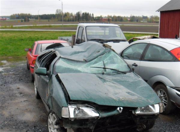 Oli patonkilainen tai ei, tuuria on ollut jos selviää sillä, että viedään tarkastettavaksi sairaalaan, katto sen verran kasassa, että olisi voinut käydä todella pahasti. Toivottavasti toipuu nopeasti. Tuli entinen GTi, mutta rahalla saa autoja, ei ihmisiä.