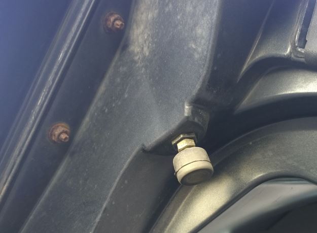 Now when engine ecu is repaired, and Activa ecu waits for part, I decided to dig into one other annoying problem of the car: deep "thumping" bass noise when driving even on very low speed. FFT (frequency analysis of this noise) showed that frequency of bass noise was around 20-50 hz and did not change according to vehicle speed, so it was clear it is not from wheels (which was my first guess because modern tyres "square out" when car stands for long time). After some study and speculation, I found the probable cause. Trunk door feeled little bit loose when it was closed. And behold, there are adjustable rubber studs in the trunk door: Liitteet: