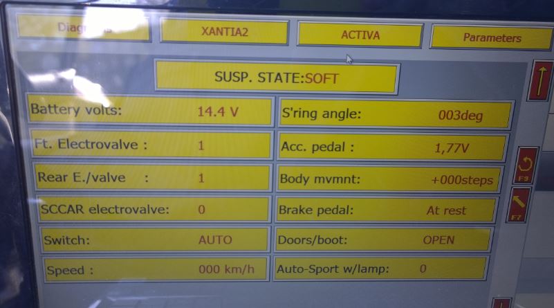I decided to write this thread in english because information about V6 Activas and their problems is scarcely available. So, I bough year model 2000 Xantia V6 Activa that had been standing outside for year and a half. I should have known better... but hobby is a hobby, so here we go. This car has many problems and rust spots, but I will get into them later. First I started to dig into the most annoying issue, the Activa (and Hydractive II) systems complete failure to work. Only basic hydraulics work on this car, Hydractive is FIRM all the time and Activa is soft (SCCAR ball in use, elecronic valve open all the time). First study with Lexia revealed the horrible truth: Activa ECU Permanent failure code. Activa ECU also contains all functions of Hydractive II, so there is no separate box for HA. Meaning, no electrovalves at all are in use. The ECU still communicates, but diagnostics show unusual data: Liitteet: