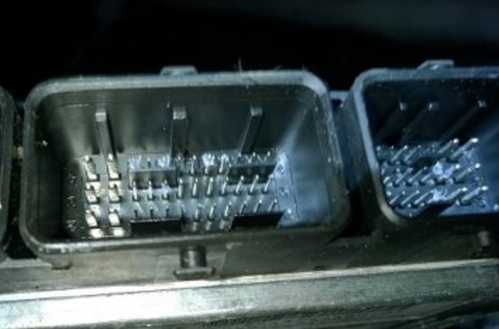 Mitä hemmettiä se oli? Sellaisia pieniä, hiukan violetin sävyisiä silikonimaisia knöölejä. Mikään liittimeen mahdollisesti jonkun suihkuttama aine tuskin jähmettyy tuollaiseksi, onko niissä tehtaan jäljiltä jotain? Samaa mönjää löytyi oman purkufemman ECUn liittimistä: Voisiko ne olla kosteuden, hapettuman (ja sähkökemiallisen korroosion) aiheuttamia yhdisteitä, usein sinivihreän sävyisiä pinnien kuparista tulleita yhdisteitä. Niitä on erivärisiäkin, vaikka kuparikatto muuttuu vihreän kautta ruskeaksi?