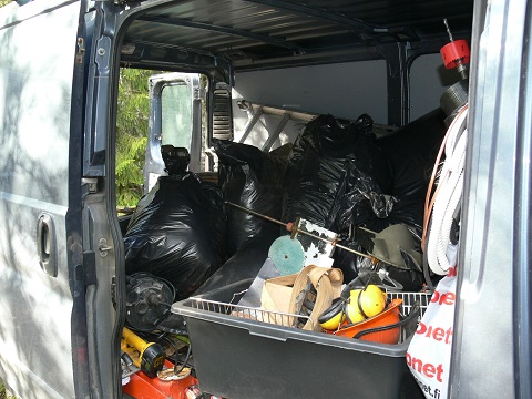 Villoja ja muita kaatopaikkatavaroita viety nyt keskiviikkona pois yks peräkärryllinen. Katos on nyt rojautettu maahan. Seuraavalla purkajalla pitää olla akkuruuviväännin kattopeltien kiinnitysruuvien avaamiseen. Maassa oli katoksen vieressä vanha sorkkarauta. Onko talon vaiko jäikö joltain mka:n noutajalta tämä? Mitsun kattotelineet vajasta vein majan seinustalle, jos joku sellaisia kaipaa. Pari vaijerivinssiä sijoitin yläpajan lattian alle. Muut aarteet matkasivat Renkoon. ( kuten kaikki nestepurtilot vajasta )