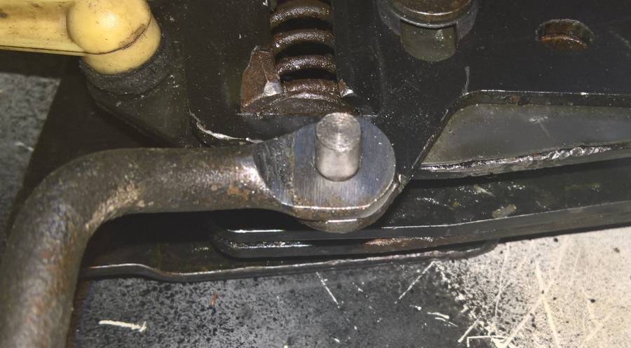 Juuri näin! Tuossa omassa toinen tappi&reikä oli kulunut tuplaten toiseen nähden. Syynä oletettavasti oli se että tuo jousipakka jousti paremmin toiseen suuntaan. Tämä johtui toki noiden toisiaan vasten liukuvien levyjen välissä olevasta kököstä, mutta myös juuri havaittavasti nurkastaan painuneesta jousipesästä. Eli jousethan noiden levyihin tehtyjen poteroiden välissä, ja aina joustaessaan jousen toinen pää liikkuu sisäänpäin päällilevyn päätytopparistaan irroten. Tässä tapauksessa taipunut reuna painoi jousta ja se lähti liikkeelle noin tuplavoimalla toiseen nähden. Lisäkitka tuli jousen päädyn hankauksesta siihen levyn reunaan.