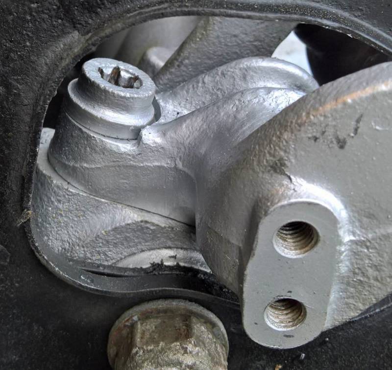 Pulttijako-ongelma selätetty. Käikäleiden kolopultin upotuksista ulkolaita tasaiseksi ja reikää 3mm soikeaksi. Tilalle vakimallin suurempikantaiset laipalliset pultit joiden laippaa hieman sorvattu pienemmäksi jotta mahtuu paikoilleen. Kanta peittää hyvin koko alueen ja pultit 10.9 lujuutta. Kestää sen mitä orkkiskin. Käikäleet ei ollut valurautaa vaan valuterästä. Pultit M12x1,5 joten standardi M12:set ei käy. Kuvasta puuttuu ja väliin tulee vielä jarruputkihässäkän kannakelevy.