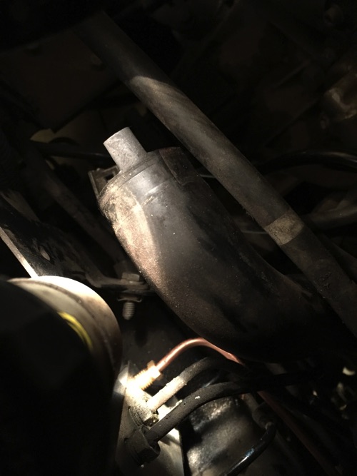 Putki securite valvelle on aika haastavassa paikassa  Tuo vaikutti kyllä aluksi tekemättömältä paikalta. Mutta kappas siihenhän löytyi suorastaan ergonominen työasento: leuka lepää sulakeboksin päällä ja vasen käsi sukeltaa läppäkotelon alta kohteeseen ja samalla niksauttaa kyynärpään ja ranteen sijoiltaan niin avot!