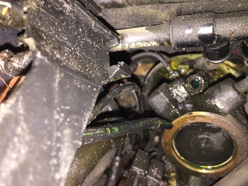 Putki securite valvelle on aika haastavassa paikassa  Tuo vaikutti kyllä aluksi tekemättömältä paikalta. Mutta kappas siihenhän löytyi suorastaan ergonominen työasento: leuka lepää sulakeboksin päällä ja vasen käsi sukeltaa läppäkotelon alta kohteeseen ja samalla niksauttaa kyynärpään ja ranteen sijoiltaan niin avot!