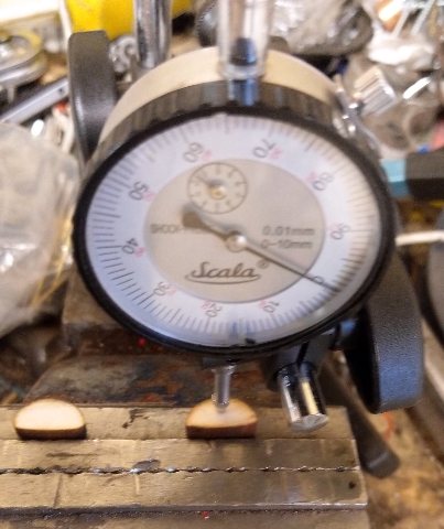Tuli vielä tutkittua noita yläpään vaimennuskumeja. Sormin puristellen kuvassa näkyyvä kumin ylöspäin töröttävää tappia, oli uudemman KYBin kumi kovemman tuntuista. Leikkasin molemmista pätkät pois ja tein "shore" testin mittakellon kärjen alla 110g painolla. Vanhaan kärki painui 0,28 ja uuteen 0,2. Myös ulkopuolinen sokkotestaaja totesi uuden kumin selvästi jäykemmäksi sormien välissä. Onko erolla vaikutusta ja onko vanhempi kumi vain löystynyt ajan saatossa? Jos oletetaan että tämä vasemman puolen uudempi KYB vaimennin kovempine kumeineen toimii jousena jota vasten jokin pyöräasetelman massa värähtelee 200 Hz taajudella, vastaisi tuo löysempi kumi äkkiseltään laskettuna vähän alle 170 hz taajuutta. Tämä pitäisi olla merkitsevä ero.