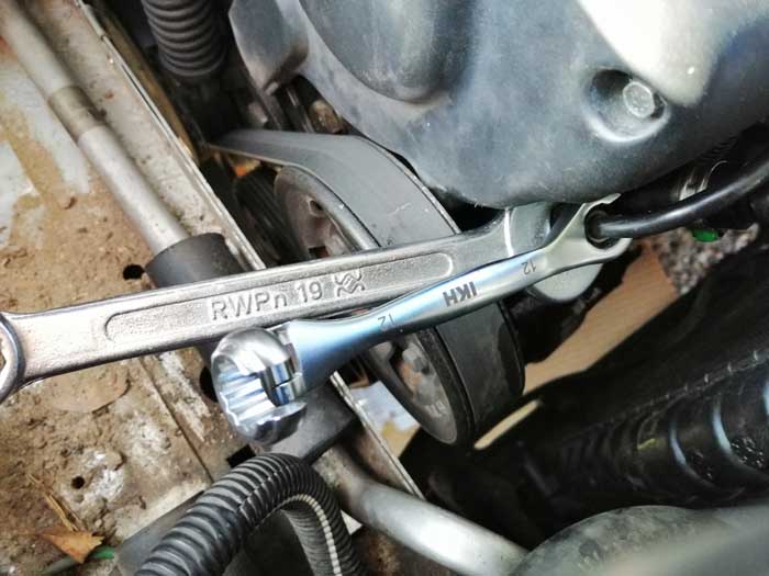 Itse tein homman jakohihnan vaihdon yhteydessä jolloin sain konetta tarpeen mukaan tunkattua ylös ja alas. Oli myös tilaa muutenkin hyvin kun oli tuo puoli konehuoneesta purettu. En itse lähtisi tähän aikaan vuodesta parkkipaikalla tekemään. En kuitenkaan väitä ettei onnistuisis.