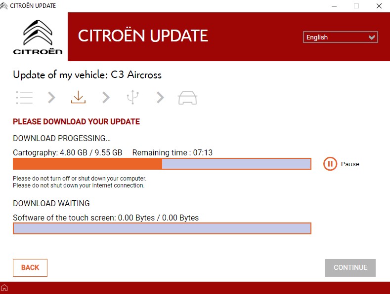 Sain vinkin päivityksestä brittiläisestä C3 Aircross ja C5 Aircross ystävien verkkosivusta. Siellä todettiin, mikäli lataa molemmat päivitykset (kartat ja firmware) samalla kertaa, asennus ei onnistu (totesin sen itsekin).