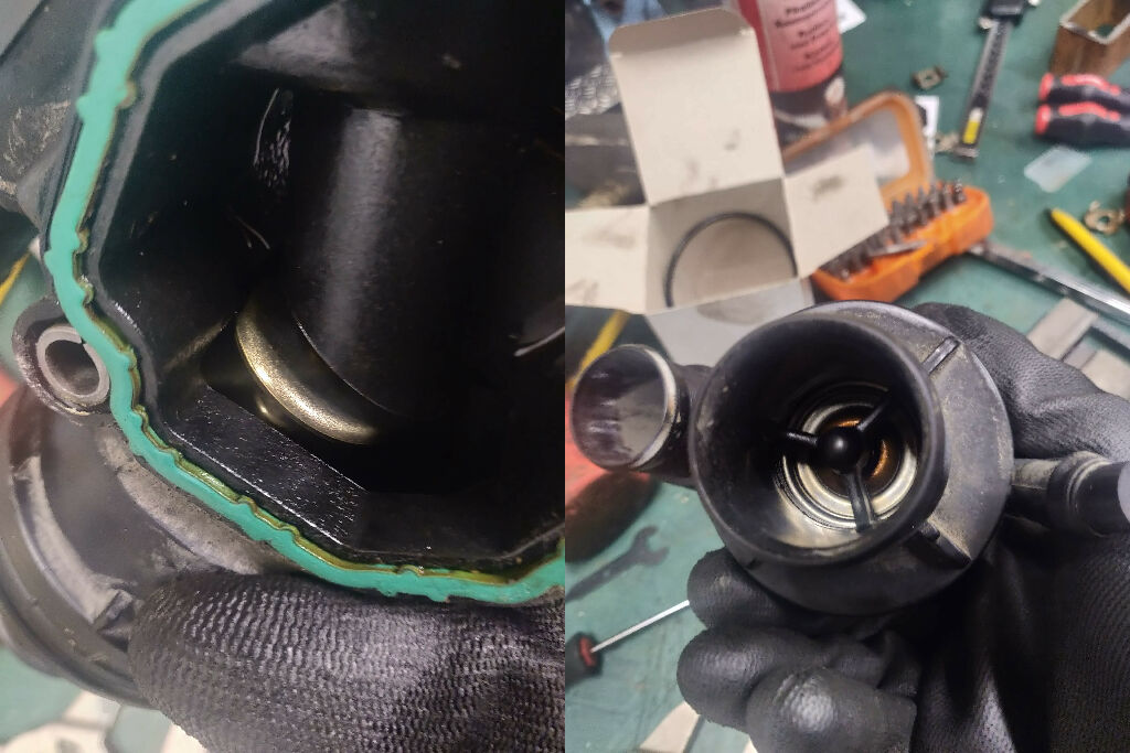 Kannattanee vaihtaa vaan se termostaattikotelo suosiolla, jos ollaan hyvää tekemässä (toki laatuosaan). Muovi on kuitenkin muovia ja luultavasti elämänsä ehtoopuolella vaikken ole vielä nähnyt näissä koppien vuotavan kuten hyvin usein siinä BMW-moottorisessa.