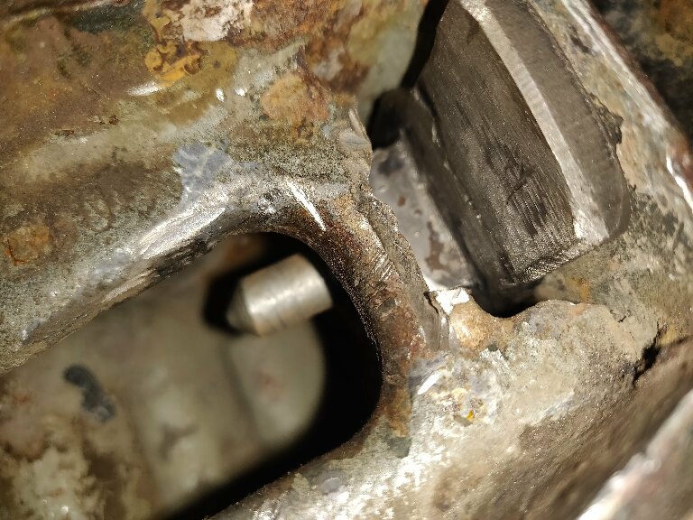Apurungon pulttien mutterit kelpaavat uusiokäyttöön pienen tuunauksen jälkeen. Hitsasin tuollaiset lisäpalat muttereihin ja vasaroin mötikät paikalleen etupuolelta, mihin olin avartanut aukkoa kiintoavainta varten (turhaan). Nyt jos joskus vuosien jälkeen avattaessa olisivatkin pultit ruosteessa, nuo mutterit eivät enää ala pyörimään tyhjää. Liitteet: