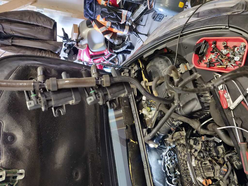 Hitaasti etenee, kuin etana klimppisopassa. Mutta nyt on turbon alipaineaktuaattori uusittu! Eihän tuossa pitänyt muuta kuin etuapurunko ja esikatti irrottaa, niin sen sai kätevästi ruuvailtua irti  Muutama iltahan tuossa meni, mutta kun niitä iltoja oli ehkä yksi tai kaksi viikossa... Mutta pääsin tänään pihalle kokeilemaan viimeisintä kasausta. Tehot ovat tosiaan palautuneet ja moottorin vikavalonkin sain sammutettua. Hauska sattuma, kun plopsahti välijäähyltä imusarjalle menevä kumiletku irti, kun pihalla kiihdyttelin. Se oli jäänyt talven jäljiltä löysälle, mutta koska turbo ei edellisellä kerralla ahtanut, niin ei irronnut. Nyt, kun vihdoin syntyi ahtopainetta, kuului jossain vaiheessa vaan "plop" ja tehot hävisivät. Tulipa siis koeponnistettua löysälle jääneet ruuvit nyt, kun kaikki muu toimii  Vinkkinä, että jos apurunkoa irrottaa näistä samanmallisista (DS5, Picasso, Pösöjä), joissa on apurungon edessä alumiiniset tukipalkit, niin kannattaa ottaa suosiolla ne tukipalkit pois, niin apurungon voi laskea ja nostaa pystysuoraan. PSA:n ohjeessa apurunkoa pitää laskea takapäästä ensin ja muiluttaa sitten tukipalkkien tapeista irti taaksepäin ja sitten vasta laskea alas, jolloin tarvitaan turhaa manööveraamista. Tukipalkit on kiinni parilla pultilla edestä, joten ei iso homma ja sitten on helppoa. Liitteet: