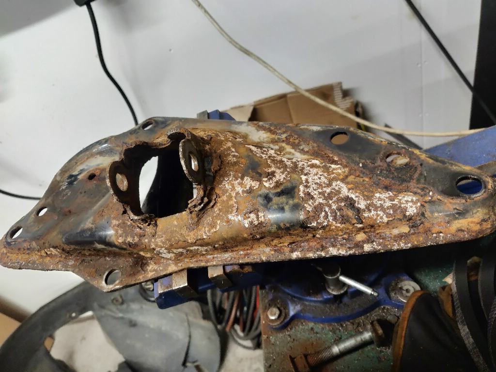 Pultti oli yksi niistä, jotka pitivät tätä iskarin ylätukea kiinni takarungossa. Pitäiskö kenties vähän hioa ja maalata ennen takaisin asennusta? Liitteet: