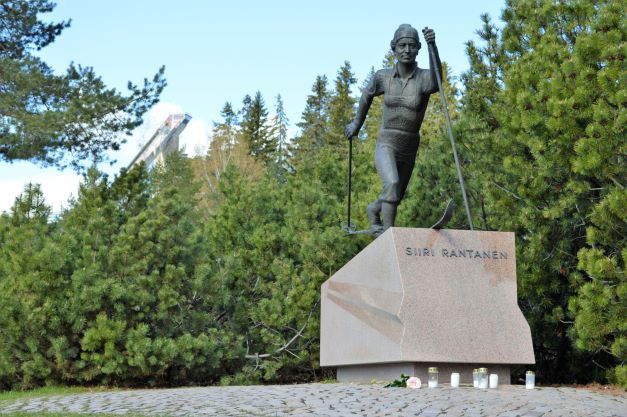 Siiri Rantasen hiihtäjäpatsas sijaitsee Lahden Messukeskuksen edustalla.