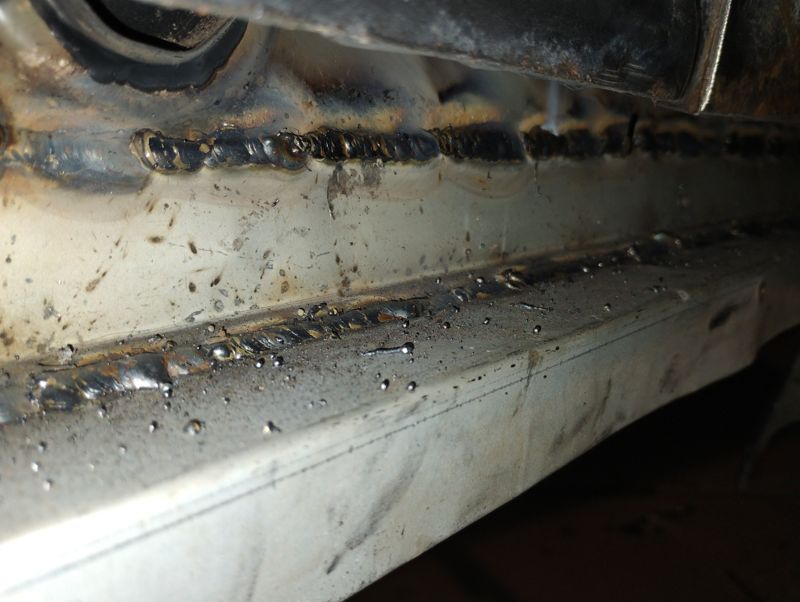 Ei aivan täydellinen, vähän virheet lisääntyi, kun vedin peilikirkkaan musta suoraan hitsausten ja teollisuusepoksi pohjamaalin päälle. Jospa se siitä vähän häipyy, kun laittaa kiveniskumassaa ja lisää mustaa... Liitteet: