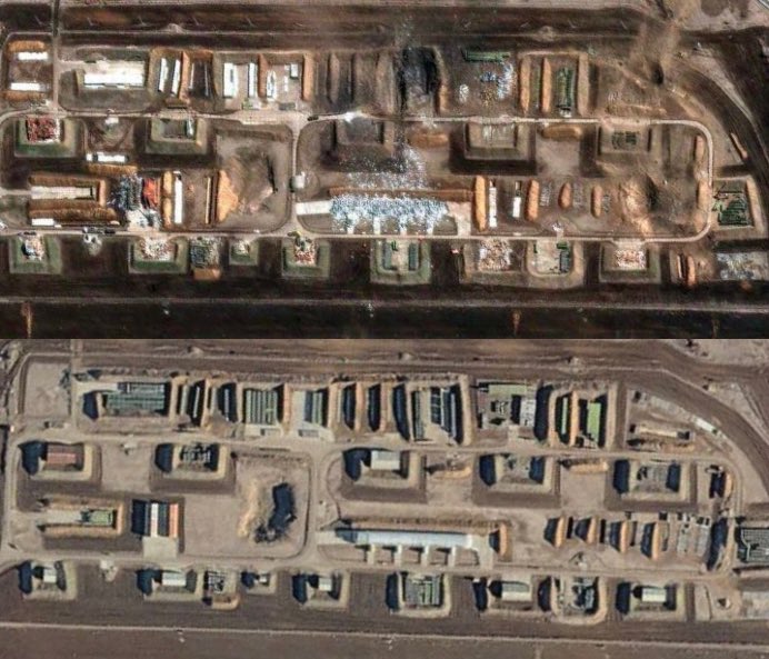 pvalila kirjoitti: Ovatko vallit olleet alimitoitettuja suhteessa varastoitujen räjähteiden määrään vai onko tuonne isketty todella monella dronella? Videoita oli missä meni ihan tuollainen hidas iso tuplapyrstöinen potkuridrone, ilmatorjunnan pitää olle ihan olematonta jos moisilla pystytään iskemään yhdelle tärkeimmistä pommituskentistä ja väite oli juuri tulleesta isosta ohjuslastista. Eikä tuolla oikein näy mitään isommille koneille sopivia sirpalesuojia olevan, ovat kyllä tuon paukun jälkeen entisiä kaikki lähimailla olleet suojaamattomat vehkeet.