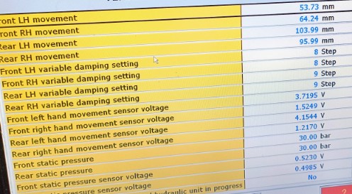 Projekti jatkuu jousituksen tuunauksen parissa. Käytin takakeskipallot auki ja molemmat olivat 37-38 baria. Voi olla alkuperäisetkin sikäli että päällä oli siisti ruostesuojamassa joka tähän on ymmärtääkseni vain uutena ruiskutettu. Meni sellaisenaan takasin. Putsasin joka kulmasta korkeussäädön pallukat ja puristelin linnunluut tiukkoiksi. Se onnistuu helposti ruuvipenkissä laittamalla suuaukkoa vasten sopivan kokoinen, n. 13 mm, hylsy jossa kartiopinta suuaukolla. Se istuu prässättyn peltikuoren aukkoon ja voi runtata noin 1-2 mm sisäänpäin ennenkuin hylsy tapaa itse luun varteen. Näin kaikista tuli välyksettömiä. Veden kestävä rasva vielä väliin. Isoin muutos oli keulan toiminnassa. Nyökkäys jarruttaessa väheni ja sellainen kaarroksen alussa ollut kallistus, jota luulin vakaajatangon puslien löysyydeksi, katosi. Nyt kurvin alussa on ripaus activamaisuutta. Mutta mukavuus puoli alkoi taas sekoilemaan ja korkeudet näytti olevan pielessä. Ei muuta kuin säätelemään ja voin toistaa kaikki haasteet joita palstoilta saa lukea hommasta.. ei saa laskettua nyt esim keulaa riittävän alas, edes 7 mm stepeissä vaan tässää säätö vikailmoon. Kun korkeusanturien mekaanista rakennetta miettii, on sekin ihan susi designiltaan, tai suunniteltu kestämään 100 tkm.. anturin lyhyt vipu, lyhyt linnunluu, ja ko geometriasta johtuva lyhyt liike joka otetaan talteen tukivarren tyvestä läheltä kuluvaa kumipuslaa.. ärsyttää että hieno systeemi on pilattu pienillä yksityiskohdilla. Kun on säädön saanut menemään tarkastuskierroksineen hyväksytysti läpi, vaikka korkeus olisikin väärä.. näyttvät anturit noin millin sisään samaa korkeutta ja jos linnunluut välyksettömät, pysyvätkin parissa millissä vaikka autoa heiluttelee. No entäs kun lasketaan ala-asentoon? Mennee arvot ihan ristiin. Kuva alla. Positiivinen lukema tarkoittaa että auto on alempana. Nuo siis eivät ole paine pois lukemia. En nyt ihan ymmärrä miksei arvot ole samoja muuten kuin että itse "korkeussäädön" asema perustuu akselin anturien keskiarvoon. Ja eri lukema syntyy joko tukivarren kumien ym nivelten joustoeroista ja/tai linnunlaulun nivelten kiinnityspisteiden taipumusta? Nämähän ovat ohuita, ruostuneita peltilärpäkkeitä jotka taipuvat pihdeillä helposti. Taipuvat myös lunnunluuta irrotettaessa helposti. No nyt kun on hieno geometria noissa vivuissa (lue liian lyhyt), niin ääriasenoissa anturin vivun kulma on yli 45 astetta. Pienikin kannakkeen vääntymä tai asennus virhe, aiheuttaa ison eron vivun asentoon ääripäissä. Tämä johtaa tuollaiseen epälineaarisuuteen mitatuissa kulmissa. Koitan seuraavaksi säätää, väännellä niitä nivelen kannakkeita samoihin kulmiin lineaarisuuden parantamiseksi. Haastena on että korkeussäätö pitää aina tehdä uudestaan näyttämään nollaa / 2.5V ja siitä lähteä nostelemaan ja laskemaan korkoja ja koittaa päätellä miten päin kannakkeita vääntelee jotta lineaarisuutta löytyisi. Asiaa kyllä helpottaa että saa auton alta näkymään lexan ruudun niin näkee montusta suoraan muutoksen.