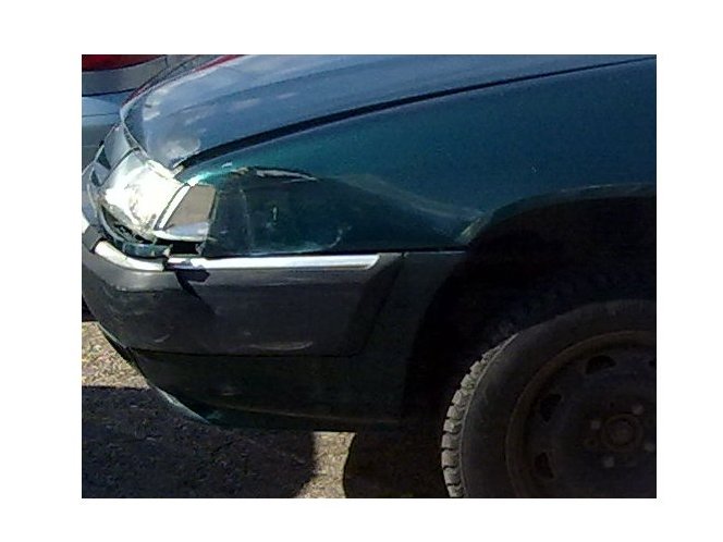 Etukulman suurennos, oikenee vaseliinilla ja rengasraudalla sisäpuolelta hieromalla. Puskurin halkeama jäänyt pinteeseen, sekin napsahtaa paikalleen kerta-avituksella. puskurin halkeaman päällä on etuvalon alamuovilistan varjo.