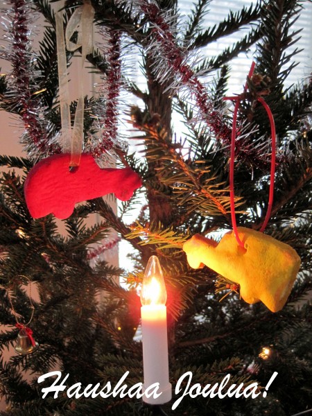 Katos vaan, mein kuusessa roikkuu pari samanlaista koristetta mutta ei kyllä punaiseksi väritettynä